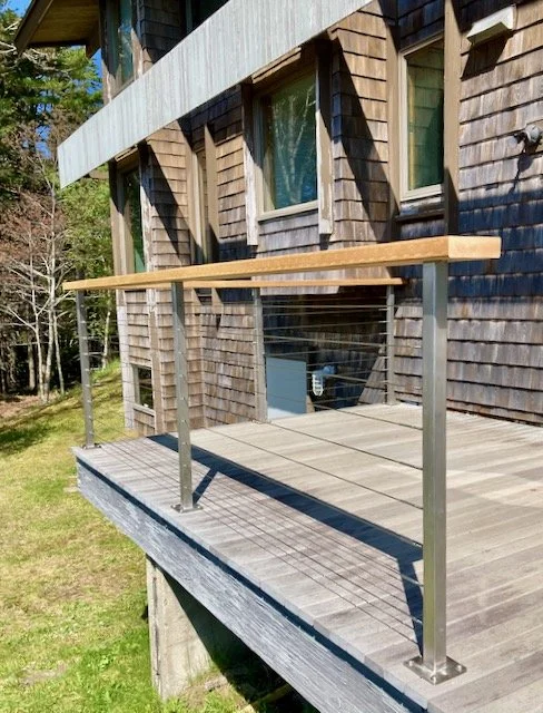Our custom cable rail system is designed for minimalist quality. We use marine grade stainless steel fittings and cables to unsure durability and tightness. Cable rail systems are equally suited for indoor and outside environments. Our proprietary system is not only superior in quality, but generally is more economical to national brands. We work with buildings, architects, and home owners to design a railing suited to their needs including instillation. Across Maine, we have installed over 8,000 linear feet of cable railing and ready to do more.